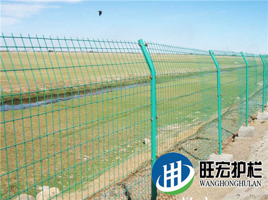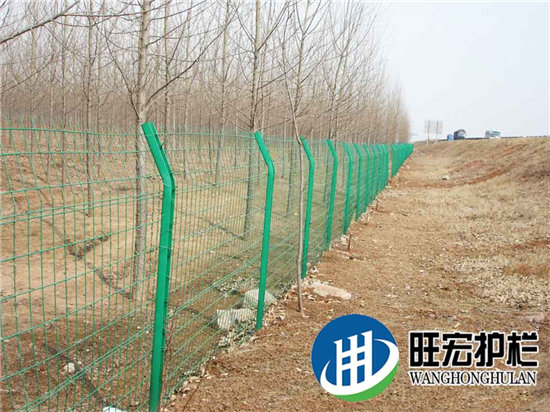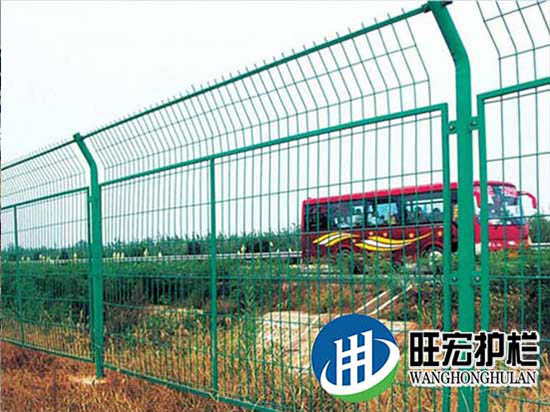 折弯护栏网用高强度冷拔丝与低碳钢丝焊接后经过液压成型,用链接附件与钢管支柱固定。