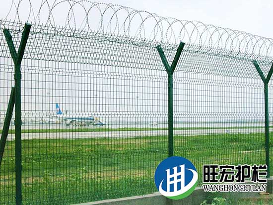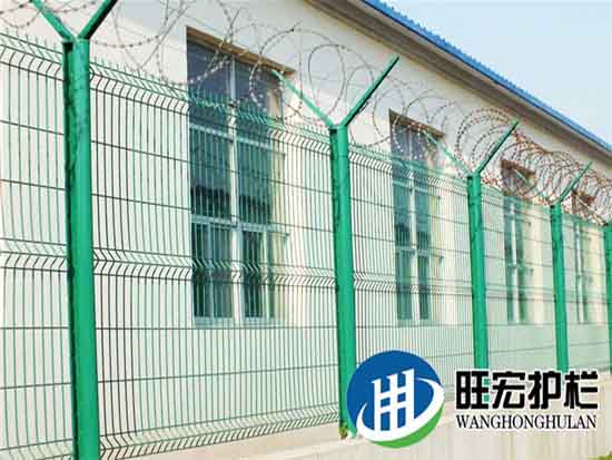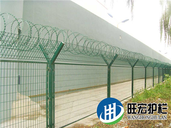 Y型护栏网是由V型支架立柱,加强型焊接片网,安全防盗连接件和热镀锌刀片刺笼组成强度和安全防御性级别很高。